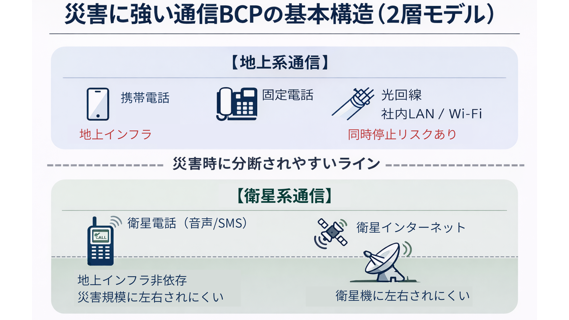 • 衛星通信だけが“地上インフラ非依存”