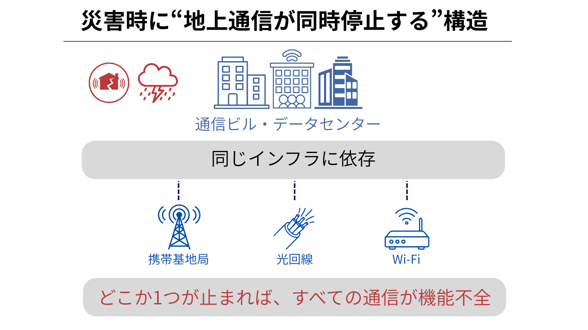 携帯電話・インターネット・Wi-Fiは、すべて同じインフラに依存しているという事実です。