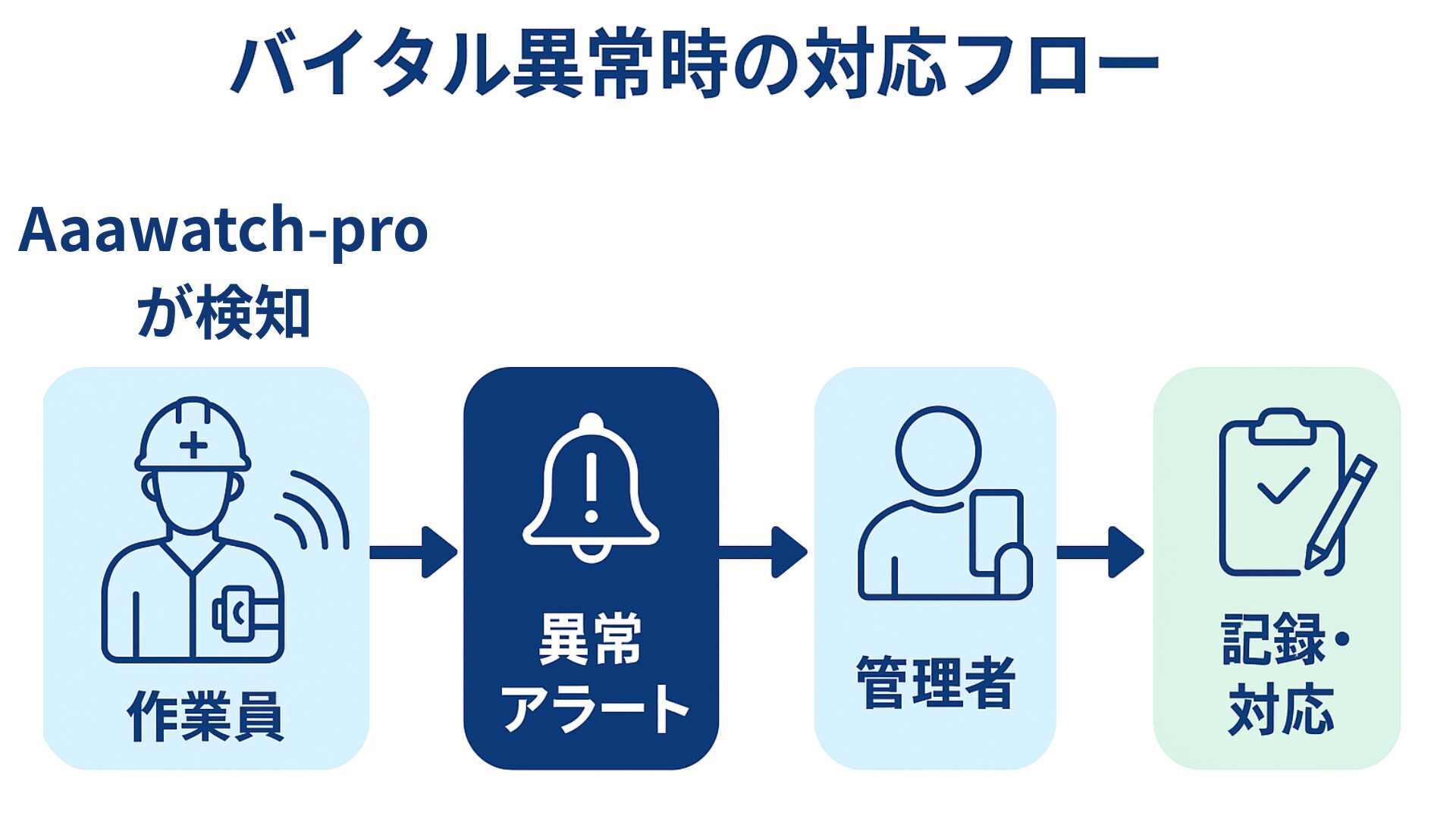 全作業員へAaaswatch‑Proを支給し、暑熱だけでなくバイタル異常も含めた統合的安全管理を実現しています。