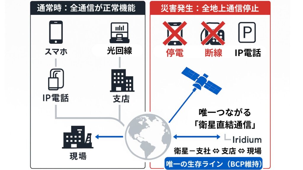 これが、災害・断線・停電の極限環境でIridiumが圧倒的に強い理由です。
