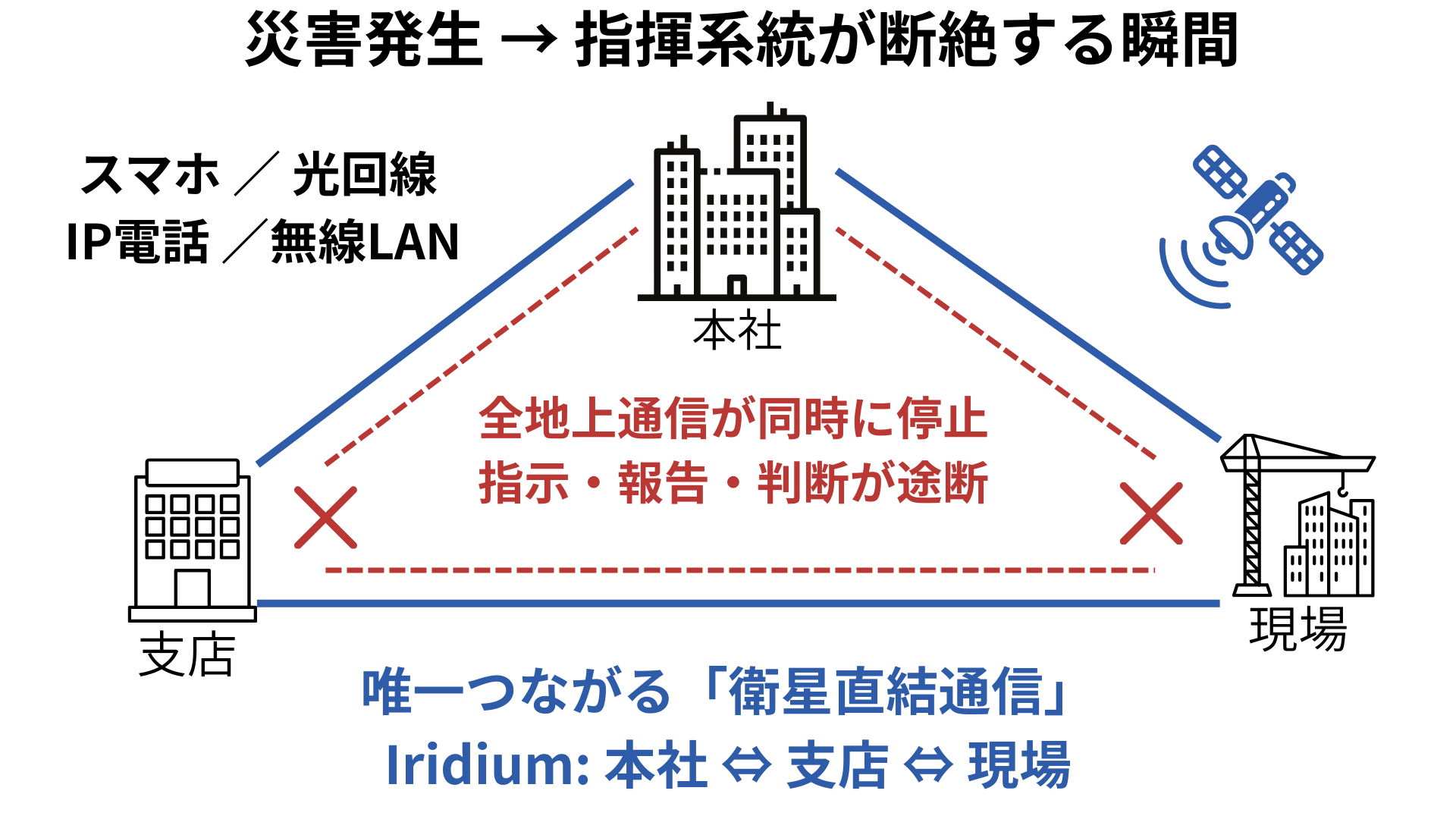 災害・停電・断線が発生した瞬間に、最初に失われるのは“地上系の通信手段”です。