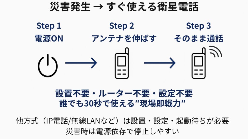 だからこそ、現場責任者は衛星通信を“自分の手元に保持する”必要があるのです。