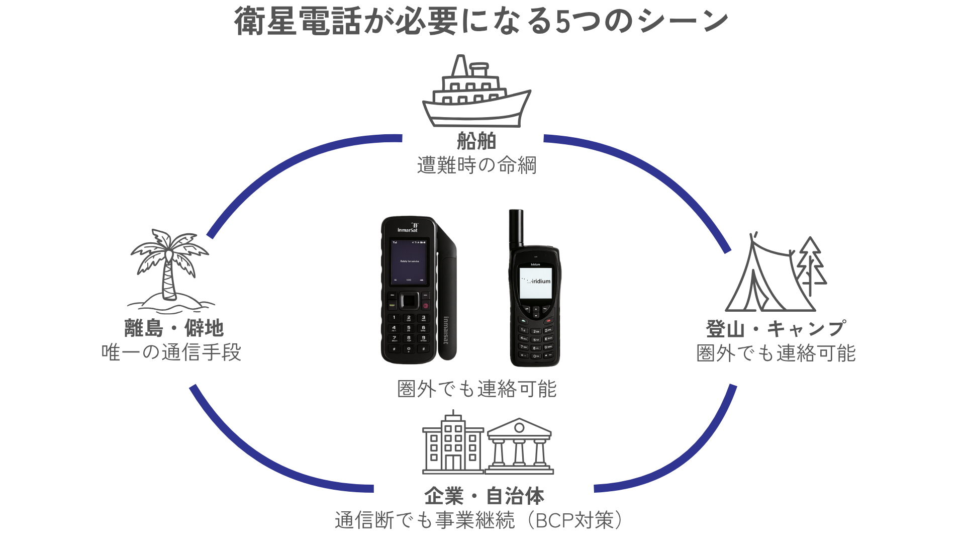 人工衛星を使って通信する電話機を期間限定で借りるサービスです。
