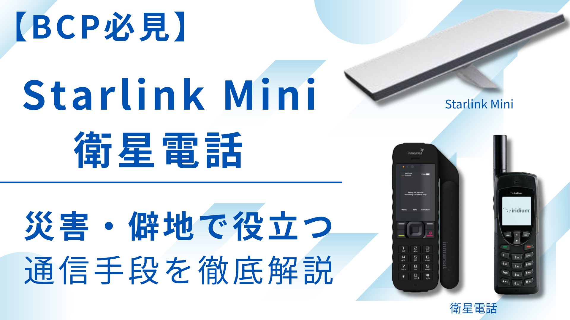※衛星電話は地上の通信インフラに依存しないため、非常時でも安定した利用が可能です。