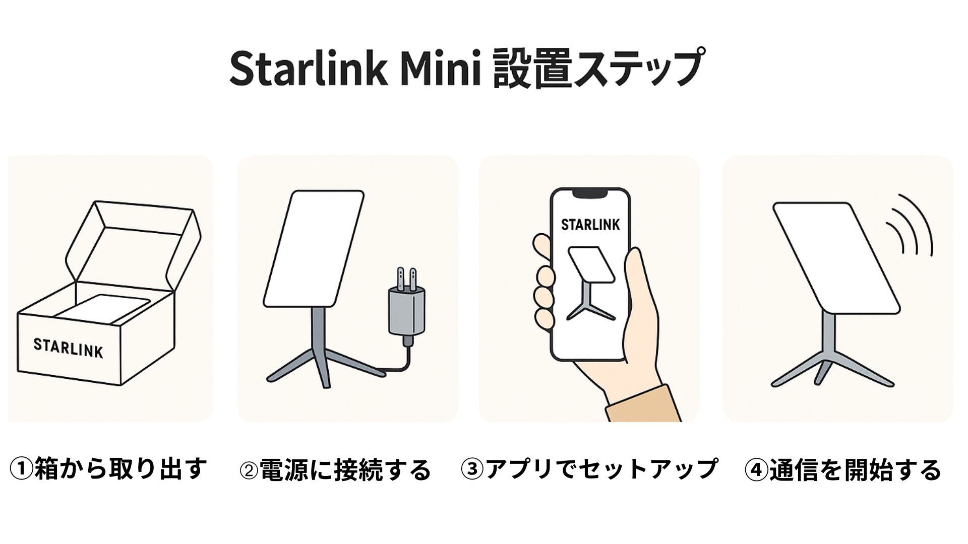 | ③ アプリでセットアップ | Starlinkアプリで方角調整と初期設定 |