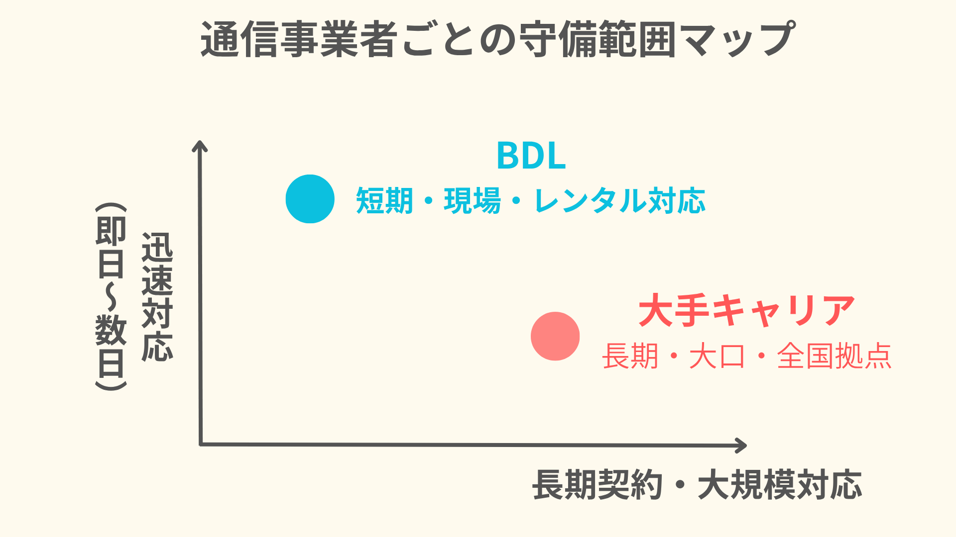 | 比較軸 | 大手キャリア | BDL(専門業者) |