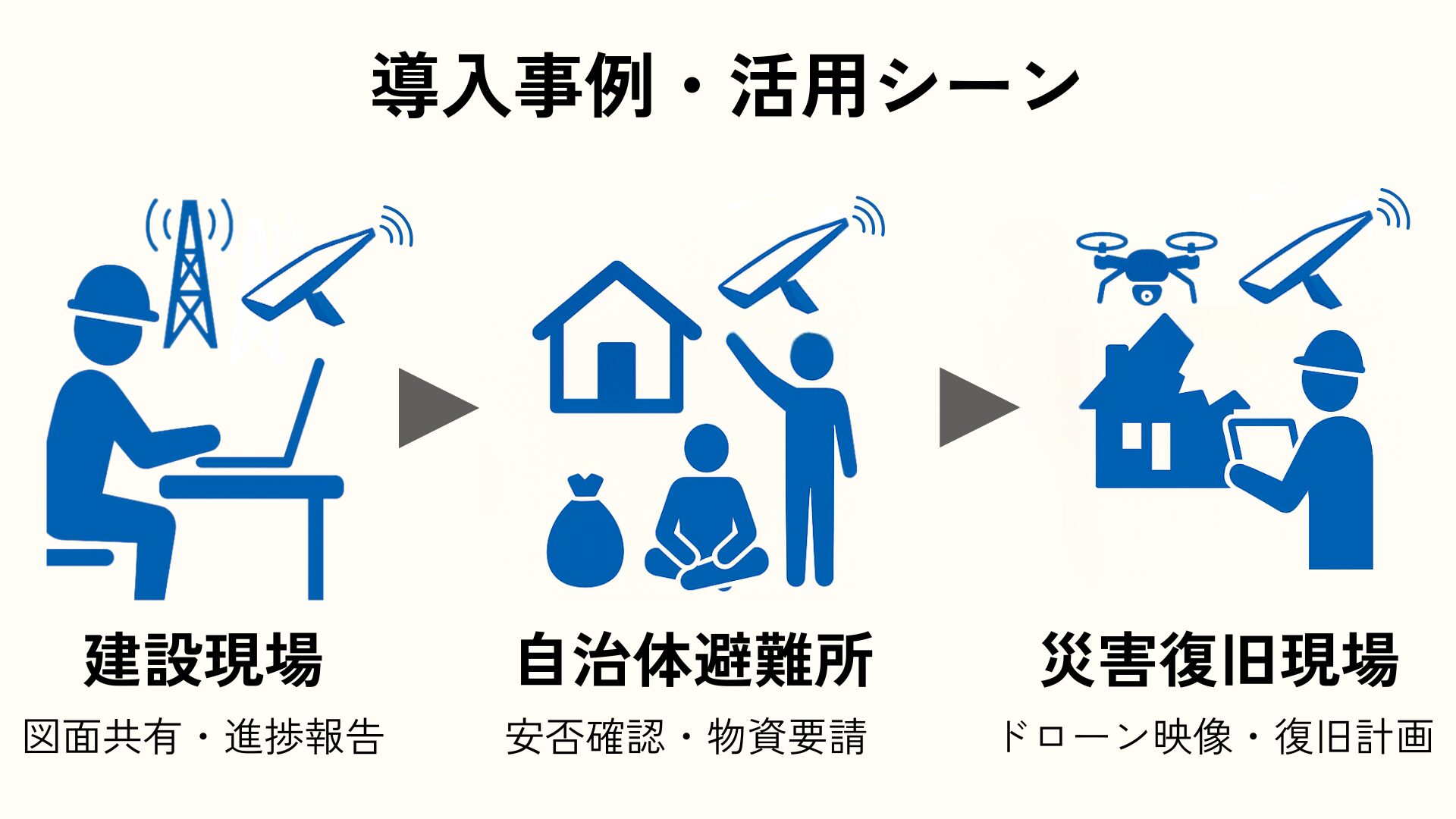 • 自治体:避難所・災害対策本部の通信確保に最適