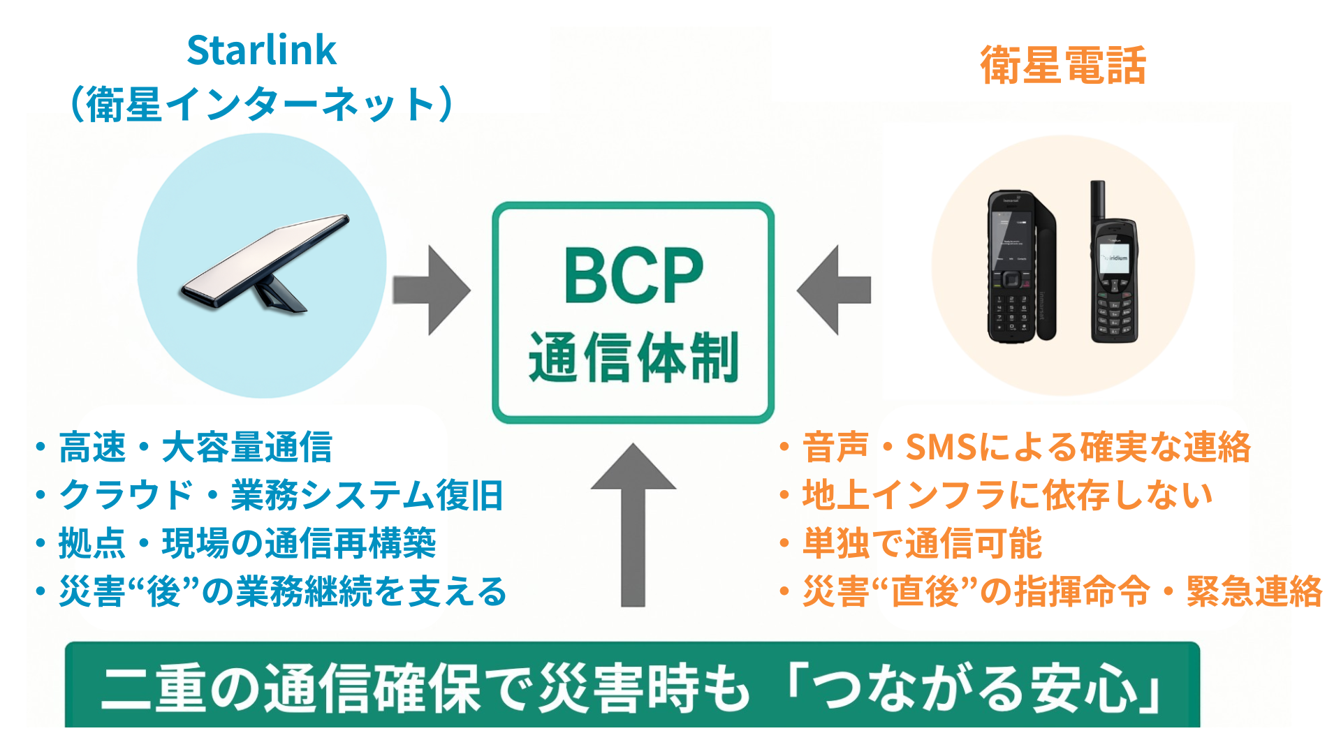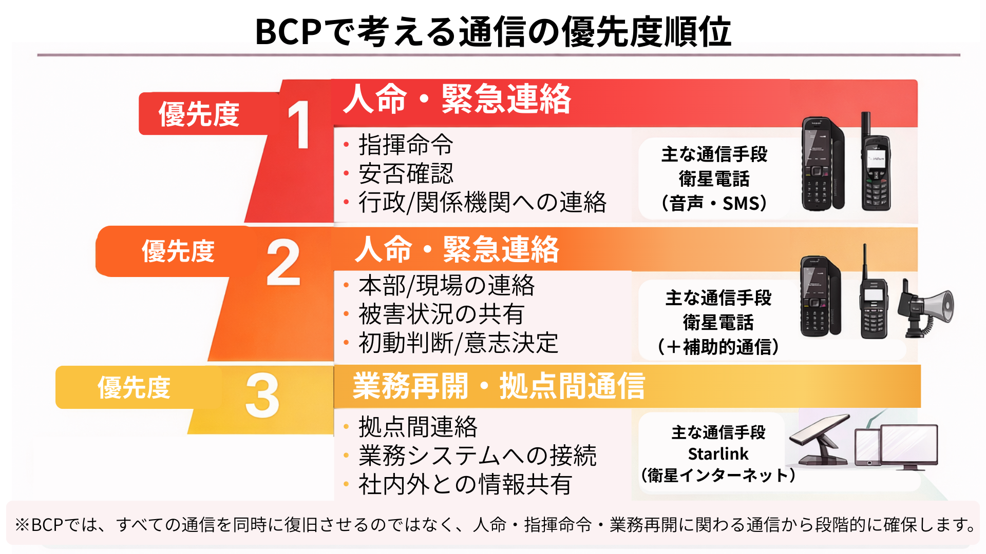 ※BCPでは、高速なデータ通信と確実な音声通信を、役割分担で備えることが重要です。